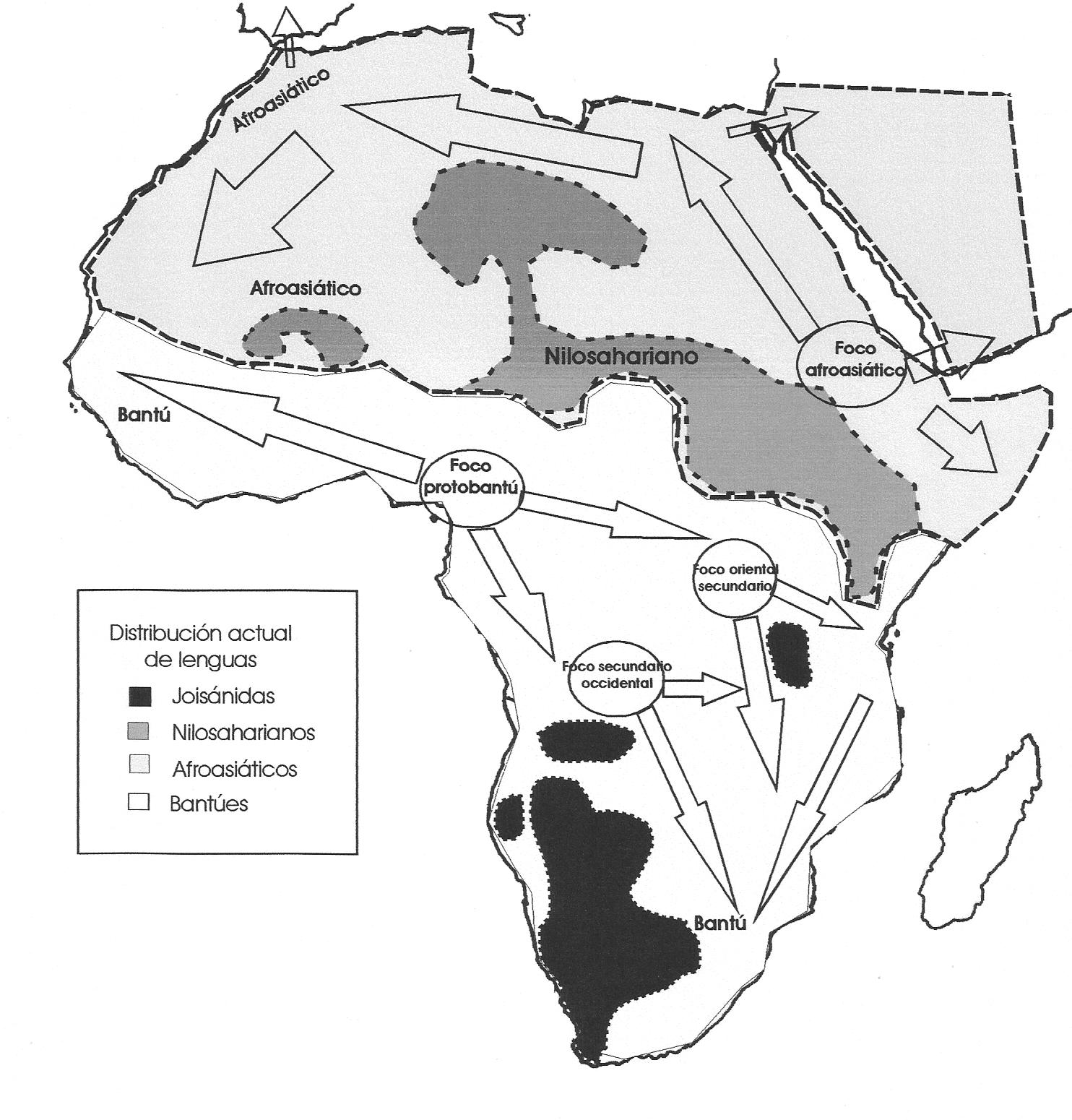 Sin embargo el posterior hierro, aunque en teoría supone una tecnología superior, estaba mucho más extendido en África de lo que en un principio se había creído y, sus muy divergentes manifestaciones arqueológicas, planteaban sorprendentes paradojas imposibles de resolver con los antiguos esquemas sobre la difusión bantú de los metales. Otros aspectos que quedaban por esclarecer eran las estrechas similitudes lingüísticas puestas de manifiesto entre idiomas que, en principio, pertenecían a distintas familias de lenguas. Por poner un ejemplo, Iniesta llamaba la atención sobre el “parentesco genético total entre el faraónico y el wolof [hablado en Senegal], idiomas en los que las coincidencias estructurales y terminológicas resultan avasalladoras”.