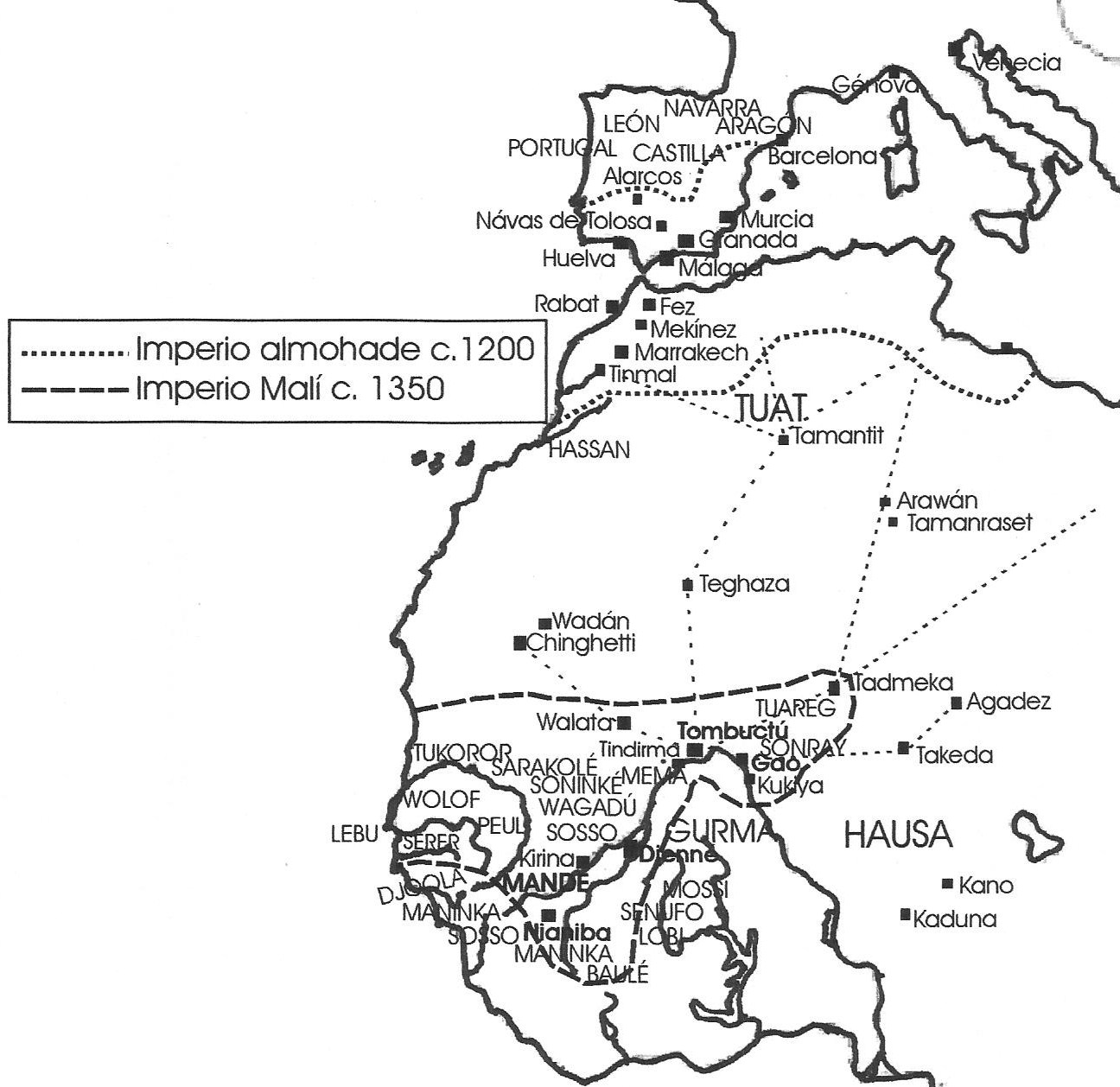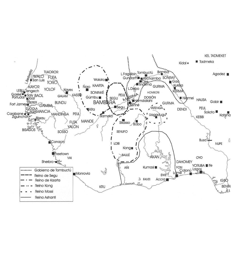 Por este motivo NNP comienza con los homínidos y termina cuando en el siglo XX la afluencia de ciudadanos chinos inundó las calles con productos baratos de importación. En todo ese largo arco temporal encontramos una introducción a las culturas y la historia del continente en general, con capítulos dedicados a Zimbabue, la costa swahili y Etiopía, pero especialmente enfocado en África Occidental, que incluye asimismo una historia de los lugares que tocaba la ruta que durante siglos unió el río Tajo y el Níger, es decir, una revisión de la historia de España, Marruecos y el Sahara, actualizada con los datos que aporta la certeza de que los musulmanes exiliados no se quedaron tan solo en el Magreb, sino que cruzaron el desierto y llegaron a vivir entre las poblaciones subsaharianas. El libro se articula en torno a mi propia experiencia intelectual y de viaje, desde que conocí las primeras noticias de Fondo Kati, hasta que emprendí el viaje por Malí y alcancé Tombuctú para conocer una biblioteca de manuscritos y obtener la biografía de su propietario, cuando se preveía el estallido de la guerra. He aquí los mapas que tuve que crear y algunos apartados sueltos que pueden dar cierta idea del tono y contenido del libro.