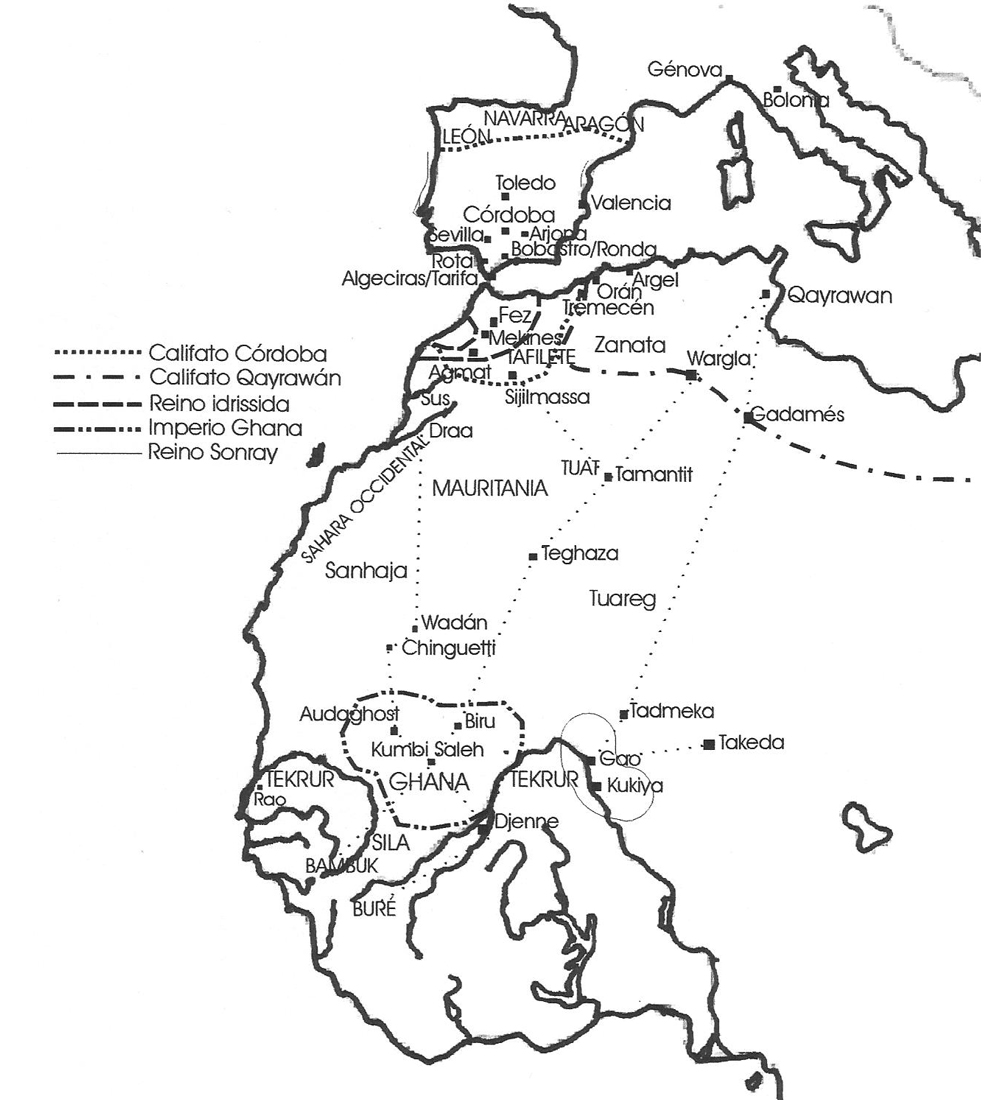 El poderío romano heredó y amplió las rutas, incluso adentrándose en el desierto. La fracción germano-vándala, expulsada por la visigoda, gobernó cerca de dos siglos sobre la Mauritania romana. El califa Abderramán III desplegó un protectorado hasta la altura del río Draa y Sijilmassa. Los reinos católicos de Portugal y España se hicieron con el control estratégico de los mejores enclaves pesqueros y comerciales del Atlántico. Pero tampoco debería ser necesario recordar las ambiciones expansionistas de los reyes saaditas hacia el sur, en vista de que España y Argelia les resultaban impracticables. Baste recordar que Muley Ahmed al-Mansur envió durante años expediciones que incluso traspasaron el río Senegal y que la ruta occidental quedó durante años bajo jurisdicción marroquí.